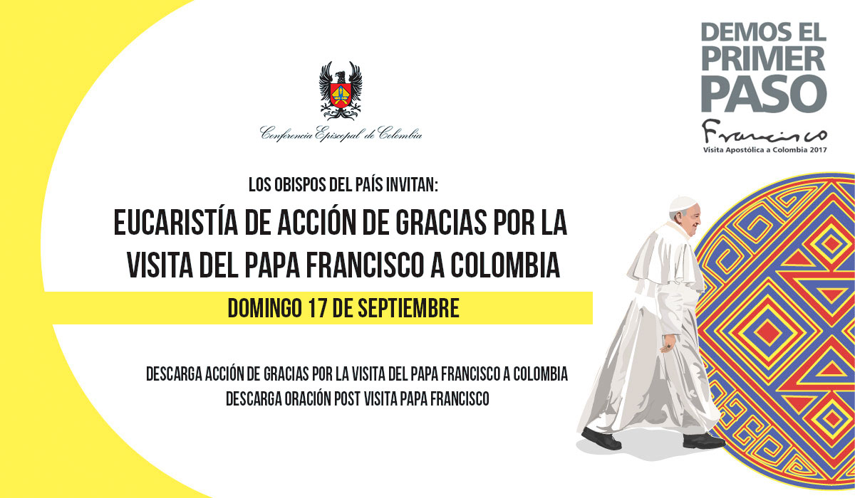 La Conferencia Episcopal invita para que el próximo 17 de septiembre, en todas las parroquias del país, se celebre una eucaristía en acción de gracias por la reciente visita del Papa Francisco a Colombia.